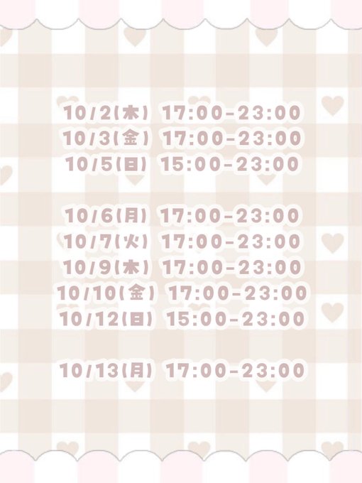 固定みみ ᕱ⑅ᕱ@mimi_catwalk·📢 10月前半のお給仕予定 𖤐ᯤ 会える予定、作ってもらえると嬉しいです₍ᵕ. ̫.ᵕ₎❣️ 来店関連の質問/連絡はDMでも答えられます👍🏻❤︎ ワンオペの日もあると思いますが、、何卒です🙇🏻♀️210262