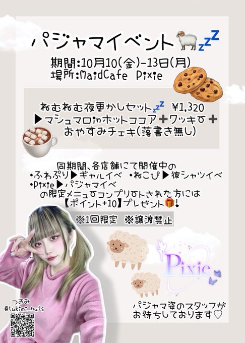 ぴゅな@pyuna_fwpri·2時間ぽいんとさんばいー!きてーo̴̶̷̤ ̫ o̴̶̷̤❕引用🦋🧚♀️MaidCafe Pixie🧚♀️🦋@maidcafe_pixie·3時間Pixie open🧚♂️✨ 10月1日(水)15:00~23:00 ポイント3倍day🌟 水曜日限定フード 【炊き込みおにぎり🍙】 15-20 つきみ@tukimi_nuts ふう@fuu_nekopi るな@luna__pixie 17-23 ぴゅな@pyuna_fwpri 🔰うい@ui_pixie 18-22 シユリ@shiyuri_pixie なう©おやすみ💤 沢山のご来店お待ちしております🩷2152