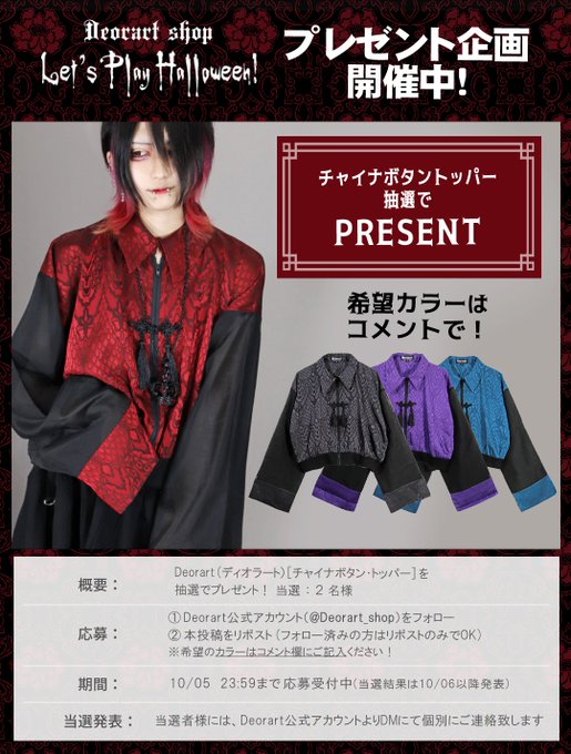 彼岸🐱♥️さんがリポストDeorart(ディオラート)【公式】@Deorart_shop·\ ハロウィンチャンス!プレゼント企画開催 / Deorart(ディオラート)のチャイナボタントッパーを、抽選で2名様にプレゼント! 透け感スリーブでコーデ広がる万能アイテムですので是非ご応募ください カラーのご希望がございましたら、コメント欄へご記入ください! 🔽応募方法🔽さらに表示2607055273.2万