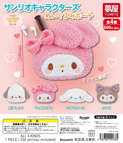 つばきさんがリポストサンリオ推し活部🌈@sanrio_oshikatu·\⚠️新作カプセルトイ【予告】📣🆕/ 「サンリオキャラクターズ ぬいぐるみポーチ」 10月のカプセルトイにて登場🥹🩷 わあああ、もこもこ素材のポーチかわいすぎる…🥹💗 色味も優しくて癒されるね🥹🩷 これも入荷日分かったらお知らせするね📣 ■発売時期:2025年10月 ■価格(税込):500円さらに表示11,1466,92930万