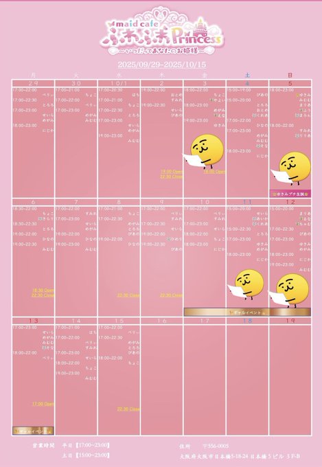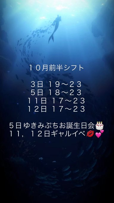 ゆきみ♡10.5お誕生日会@yukimi_fwpri·10月前半シフトです 5日ゆきみ人生初のイベントぷちお誕生日会します‼️この日は皆さんと素敵な時間を過ごしたいです💭11,12日ギャルイベ‼️ギャル頑張ってなるど〜‼️‼️‼️‼️10147