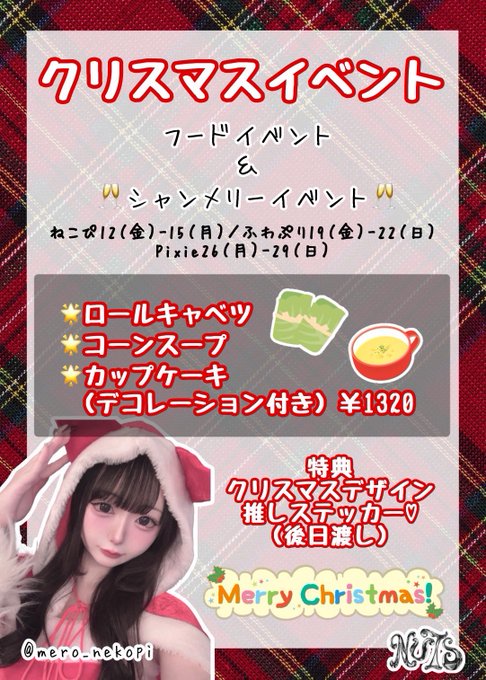 難波・日本橋 MaidCafe Pixie固定ぴゅな♡ふわぷり@pyuna_fwpri·12月後半お給仕予定.⋆𝜗𝜚 19日 クリスマスイベント 20日 にゃんとぴあ🐈⬛ 27日 とろろ©生誕卒🌸 ※27日17-21に変更していただいてます🙇🏻♀️՞ サンタコスやっと届いたから着るの楽しみ~♪ 少ないけど会いに来てくれたら嬉しいです❣️5156