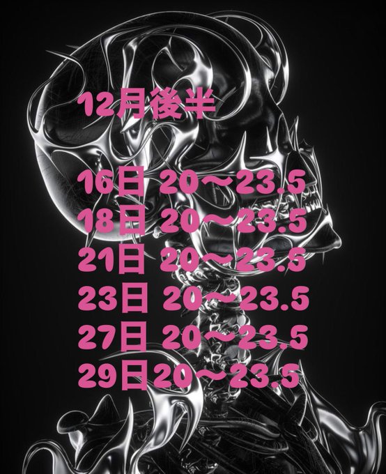 難波・日本橋 クロナイすや🎚1206.07🎚@クロナイ@kuronai_suya·12月16日!!!!!!!!初めましてだ、、!わくわく!!!!!!!!!名古屋のことたくさん聞いちゃお😊引用クロナイ┃大阪・日本橋🦇魔界コンカフェ@bloody_gothic_·12月15日✨🦇御案内🦇✨ 12/27(土) 16:00〜24:00 MRC名古屋@mrc__ngy から にゃんめたるチャン@nyanmetal_mrc ういチャン@ui_mrc のお二人がクロナイに召喚されマス😈 貴重な使イ魔姿をお見逃しナク👁15665