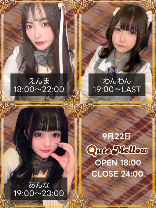 🐶わんわん🐶@wanwan_uoxcu·9月22日対抗イベントスタート🏃♂️➡️ 応援よろしくお願いします꒰ ᐡᴗ͈ ̫ ᴗ͈` ꒱引用QuteMellow 大阪日本橋【コンカフェ】きゅーめろ@qutemellow·9月22日本日9/22は【18:00オープン】です! 🧸出勤キャスト えんま 18:00〜 @sakuramochi543 わんわん 19:00〜 @wanwan_uoxcu あんな 19:00〜 @annatan_0319 ぜひ遊びにきてくださいね🫶💭 お待ちしております🕊️✨ また、キャストの日常を綴ったブログを開始しております。さらに表示13339