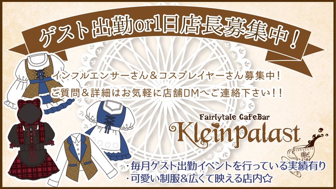 クラパラ┃大阪・日本橋🦉童話コンカフェ@KlePala1020·•────•°•❁•°•────• .⁺𖧷インフルエンサーさん𖧷⁺. ⚘ ゲスト出勤&1日店長 ⚘ ะ ⚘ ⿻ 大大大募集中 !! ⿻ ⚘ ะ •────•°•❁•°•────• ⍋ お気軽にご連絡下さい˒˒ ꊛご応募&詳細はDMまで𓂃܀✿ #コンセプトカフェ #ゲスト出勤 #大阪 #なんば #心斎橋 #宗右衛門町1166