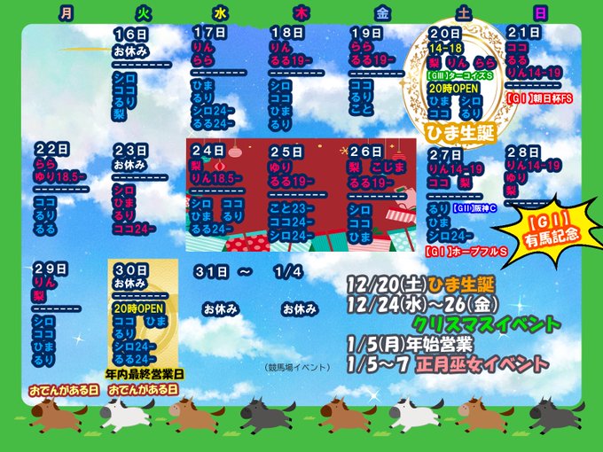 心斎橋・ 宗右衛門 ROYAL HORSE固定ROYAL HORSE🏇ろいやるほーす@royalhorse2024·12月後半シフトカレンダー23