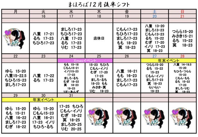 難波・日本橋 まほろばまほろば🪭@mahoroba_nanba·12/16(火) 【お給仕メンバー】 OPEN17:00 CLOSE23:00 八重 @yae__mahoroba ちひろ @chihir_o0O #コンカフェ #オタロード #難波 #大阪11312