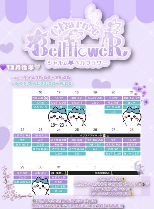 難波・日本橋 まほろば固定まほろば🪭@mahoroba_nanba·🪭まほろば12月後半シフト🪭 【イベント詳細】 24日(水)25日(木) 🎄Xmasイベント🎁✨ 27日(土)〜〜31日(水) 🦄₊⁎年末イベント⁎⁺˳✧༚📣 *31日ばぶるす🐈合同営業になります! ↓遠隔サイト✨ http://mahoroba1234.base.shop ↑クレカ決済などの追加してますので チェックお願い致します✅69428