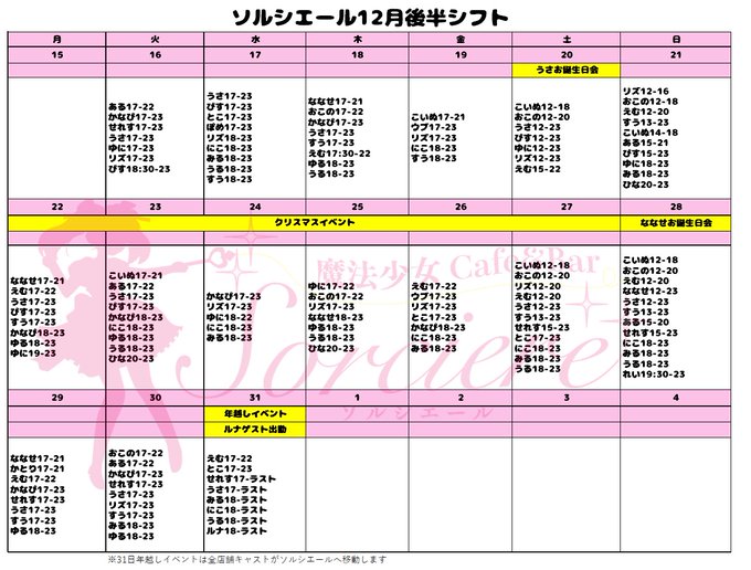難波・日本橋 ソルシエールソルシエール@魔法少女コンセプトCafe&Bar@sorciere_osk·〜本日(12/18)の魔法少女〜 うさ @sorciere_usa おこちゃん @_ohkono_ かなぴ @sorciere_kanapi すう @sorciere_suu まぎ @magi_sorciere 17:30- えむ @emu_sorciere 18- ゆる @yuru_sorciere うる @uruuu_pyon 遠隔サイト http://sorciereosk.official.ec/?s=09 #コンカフェ #大阪 #コンカフェ営業さらに表示2123