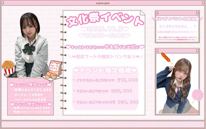 ☀️ m o n o F a m 🌙@monofam_·5時間📢【お知らせ】 急遽ではございますが、キャスト人数の都合上 本日Fammieでの営業となります✨ 皆さまのご来店お待ちしております!引用☀️ m o n o F a m 🌙@monofam_·9月6日🌈💖あげ盛り平成💖🌈 〜チョベリグNight〜 #あの頃のバイブスを取り戻せ 2025年9月28日(日) 🍹 限定フード&ドリンク 🍾 不思議なシャンパン特典あり 推しとデコデコしちゃおう🤟🥺🌈💬 みんなで平成のバイブスを取り戻そう💫24390