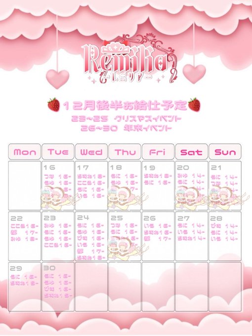 心斎橋・ 宗右衛門 美少女酒場じゅげむ🦋美少女酒場じゅげむ🦋@bsjsakaba_jugem·12月後半の出勤予定表です。 ★主なイベント予定 12/19~12/25 クリスマスイベント🎅 12/27~12/30 年越しそば🍜 今年も一年、お世話になりました🙇♀️ 来年もよろしくお願いいたします🐴 #大阪 #心斎橋 #ミナミ #コンカフェ #求人 #バイト募集129