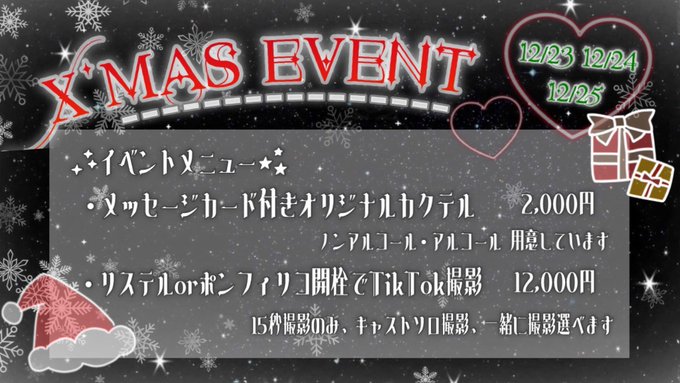 難波・日本橋 パルファン 大阪店固定パルファン大阪|日本橋🧚香水の妖精コンカフェ@pfosk_0920·【12月後半のイベント一覧✨】 12月のパルファン大阪はイベントが盛りだくさん❕ クリスマスなどご新規様でもお楽しみいただける内容も♡ さらに!!! ご新規様は【ポケパラ見た!】でカウンター1セット半額orチェキのプレゼントも🎁✨ ⬇️出勤情報はこちらをチェック⬇️ http://pokepara.jp/osaka/m300/a33…12143