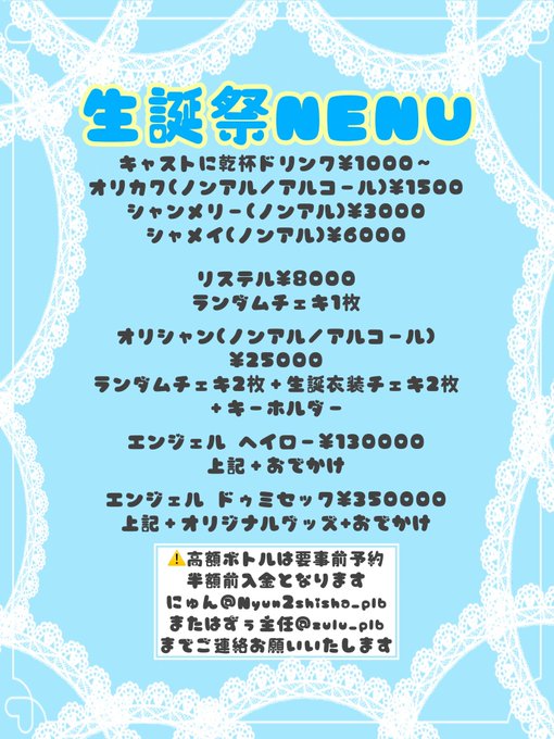 大阪コンカフェ🎀Melty moon🎀@Melmoon_concafe·🤍パジャマイベント🤍 ❤︎2025.9.26❤︎ ❤︎18:00~5:00❤︎ ❤︎イベント限定フード❤︎ ・秋の特製パスタ🍝 ❤︎イベント対象シャンパン❤︎ ノンアルオリシャン ¥10000 アルコールオリシャン ¥20000 アルコールオリシャンロゼ ¥30000 ♡対象シャンパンのご注文で推しの写メプレゼント♡31757