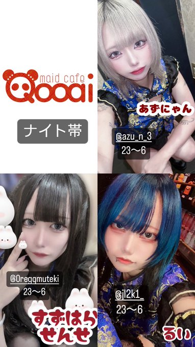 Qooai 心斎橋ミナミ本店【コンカフェ】@Qooai_·🐼本日のQooai心斎橋 ログインキャストさん🐼 ◇加糖 @Kato_Sugar_401 18〜23 ◇なと @n_to710 ⁇〜23 ◆あずにゃん @azu_n_3 23〜6 ◆すずはらせんせ @0regqmuteki 23〜6 ◆るい @jl2k1_ 23〜6 ミナミにあるコンカフェ Qooai -クーアイ- ご入国お待ちしております🐾 --- ■住所■さらに表示4216