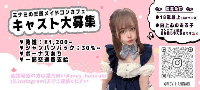 心斎橋・ 宗右衛門 Cafe&Bar Honey Rabbit #はにらびはにらび🐰Cafe&Bar HoneyRabbit🎀@hani_rabi00·【キャスト大募集】 大阪ミナミの王道メイドコンカフェ ╲HoneyRabbit 🐇♡╱ 🎀経験者/未経験者も大歓迎◎ 求人情報は画像をご覧ください⬇️ 面接連絡や質問等は猫乃めい@mey_hanirabi のdmまで✉️ 🍓♡http://lit.link/hanirabi #大阪コンカフェ #コンカフェ求人2109