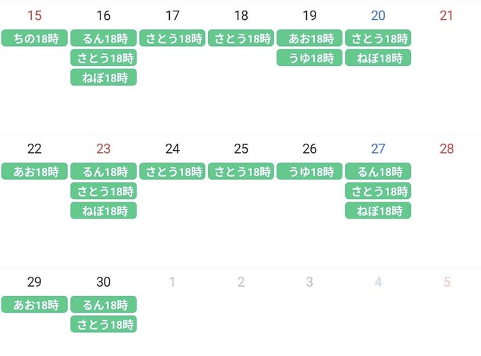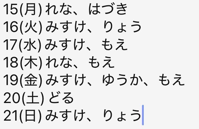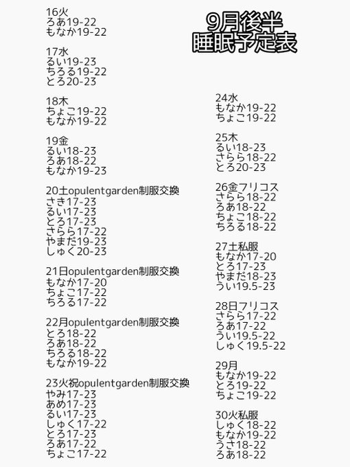固定Cafe&Bar#1904@cafebar_1904·9月後半シフトです❕ 16日 店休日 20.21日 文化祭イベント💯📝 21日 しな卒業🌸 27日 るちあ生誕祭🎂💛 毎週月曜日 私服 雨の日/小計¥10,000-以上でガチャガチャ1回無料❣️ 9月後半もよろしくお願いします🙇♀️273,111