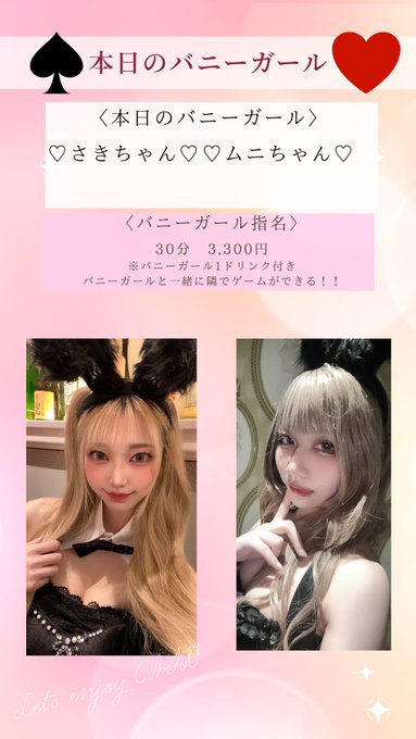 Jack&Queen👯♀アミューズメントカジノ@JQosaka·Jack&Queen👑OPEN 18:00〜24:00(L.O. 23:20) 本日のバニーガール🐰 👯♀️さきちゃん 👯♀️ムニちゃん ⭐エントランス カジノ ¥3,000+1Drinkオーダー制 バー ¥1,500+1Drinkオーダー制 💰チップ ¥2,000〜 $100〜 ➡チップはグループで共有可能! ※チップは現金やギフトに交換はできません。さらに表示22300