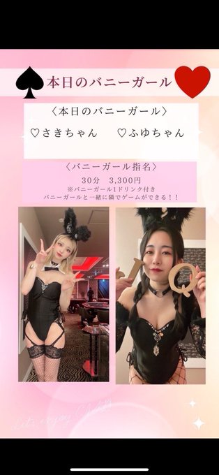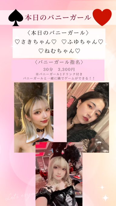 Jack&Queen👯♀アミューズメントカジノ@JQosaka·Jack&Queen👑OPEN 18:00〜24:00(L.O. 23:20) 本日のバニーガール👯♀️🐰 👯♀️さきちゃん 👯♀️ふゆちゃん ゲストバニーガール👯♀️🐰 👯♀️ねむちゃん🦄🌈 @nemu_arcielzzz ⭐エントランス カジノ ¥3,000+1Drinkオーダー制 バー ¥1,500+1Drinkオーダー制 💰チップ ¥2,000〜 $100〜さらに表示11363