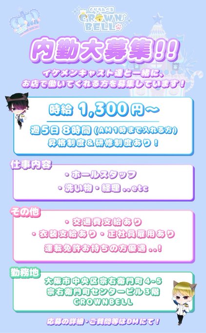 固定CROWN BELL@crownbell_cafe·🔔CROWNBELLキャスト募集🔔 コンカフェCROWNBELLのキャストとして働いてくれるイケメン王子大募集‼️ 🐶オリジナル制服貸出 🐾平均時給1,700円 🐾最大バック70% 🐾昇給制度あり◎ 🐾交通費支給/送迎あり 🐾経験者優遇/未経験者歓迎 お気軽にこちらのアカウントまでDMください📨 #コンカフェ求人22751
