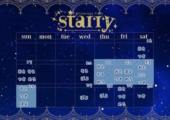 固定Twinkleてぃんくる【大阪日本橋コンカフェ】@cafebar_twinkle·8月後半シフト 21日~24日 夏の私服イベント 軽めのフードあります 21日 ゲスト出勤 星奈彩夏さん392,376