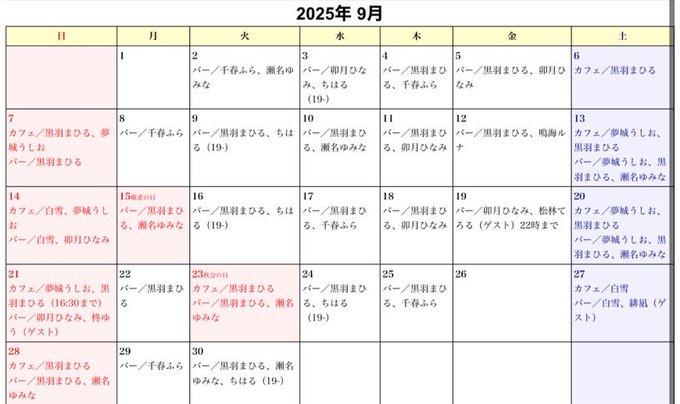 アルテマ(カラオケBAR)ultema@ultema7·9月のシフトを更新いたしました🆕 ※予告なくシフト変更されることがあります。最新情報はhttps://ultema7.jp/ftschedule221/schedule.cgi… こちらからご確認ください。19271,412
