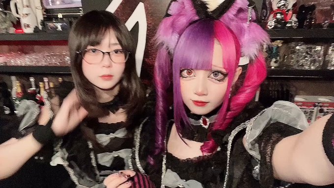 難波・日本橋 クロナイクロナイ┃大阪・日本橋🦇魔界コンカフェ@bloody_gothic_·クロナイ開館イタシマシタ…😈 本日モ👻チラズアートサンコラボ🏪、 まかICOCAキャンペーン、年賀状キャンペーン、ぱるてのんジャンボ開催中デス🦇🖤 😈本日ノ使い魔😈 🖤魅音@mion_kuronai 😈純真@kuronai_aduma 🖤むつき@mutsuki_mrc0:3427746