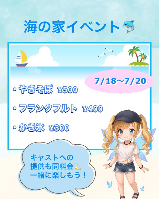 cafe & bar Titania@cafebar_titania·本日はこちら↓↓↓ さきの 19-22 @nemui00u_u みく 19-22 @KILL_3q うい 19.5-01 @_uinyanl ゆら 21- @__yawzzn つき 24- @nya_uun 今週末は海の家イベント🐬🫧フードもあるので是非是非お越しください💫3307