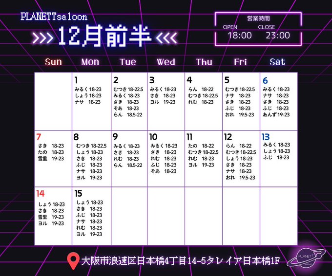 難波・日本橋 プラネットサルーン固定プラネットサルーン(公式)@PLANETTsaloon1·🪐12月前半シフト🪐2141