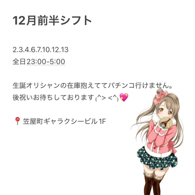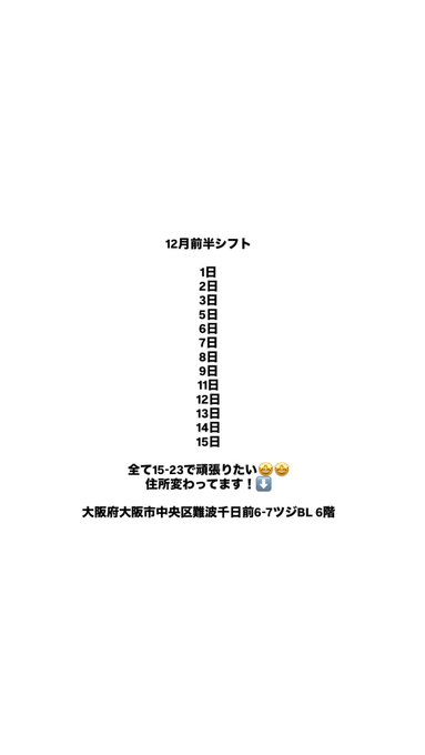 難波・日本橋 Lycoris(リコリス)あまねさん@amanyayowai·12月前半シフト 場所変わってるので注意してね、1日遅刻する可能性激高、来店あれば確実に来ます1576