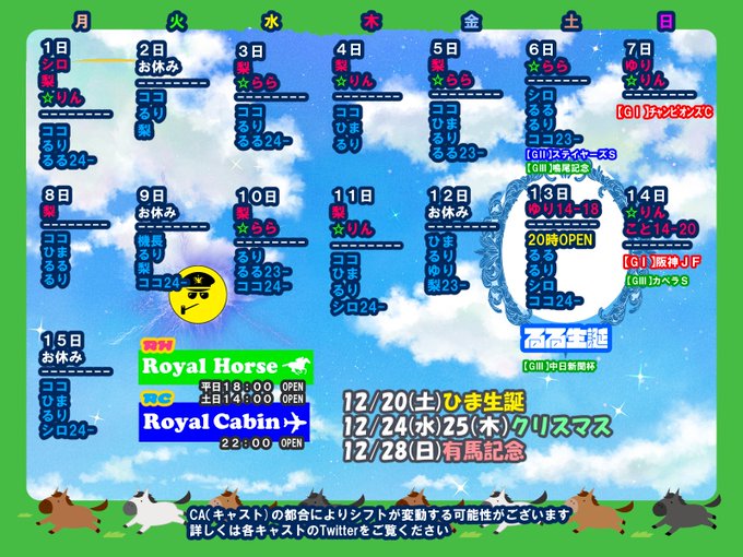 心斎橋・ 宗右衛門 ROYAL HORSE固定ROYAL HORSE🏇ろいやるほーす@royalhorse2024·12月前半シフトカレンダー25