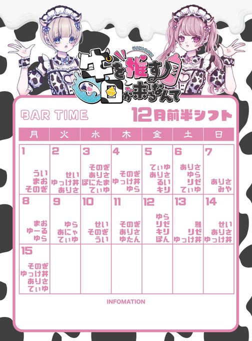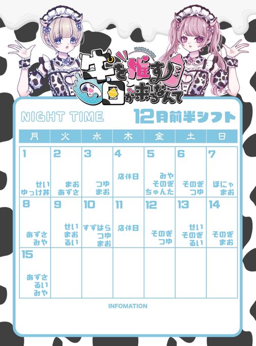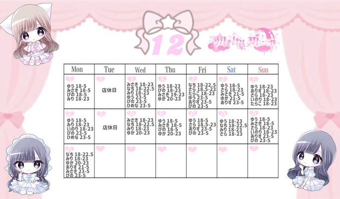 心斎橋・ 宗右衛門 Meltymoon固定大阪コンカフェ🎀Melty moon🎀@Melmoon_concafe·🎀12月前半シフト🎀 皆さまのご来店お待ちしております💗3109