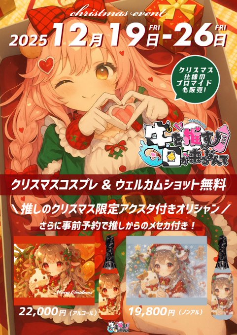 難波・日本橋 クロナイセト❄️@クロナイ@kuronai_seto·9時間ご予約必須ですよ イベント中に来れないよーって方も予約できますჱ̒˶ー̀֊ー́ )引用クロナイ┃大阪・日本橋🦇魔界コンカフェ@bloody_gothic_·11時間🌲御案内🌕 クリスマスイベントオリシャンのお知らせ🦌✨ 契約者様タチへの使い魔お手製オリシャンご予約承り中💜🎁 使い魔が貴方の為だけに手作りします😈💖 特典も盛りダクサン👀 予約必須デスのでお見逃しナク🌙 #コンカフェ #クリスマス1130