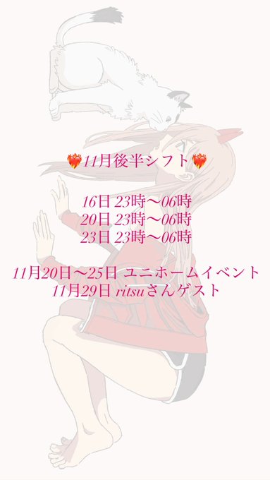 難波・日本橋 cafe &barアンジェール固定こと@あんじぇーる@koto_angelle·11月後半しふと⭐️ 21日18-22 22日17-22 23日17-22 28日18-22 29日17-22 30日15-22 29.30チーム対抗イベント♥️ 後半たくさんいます!!お話したいなあ> Ɛ