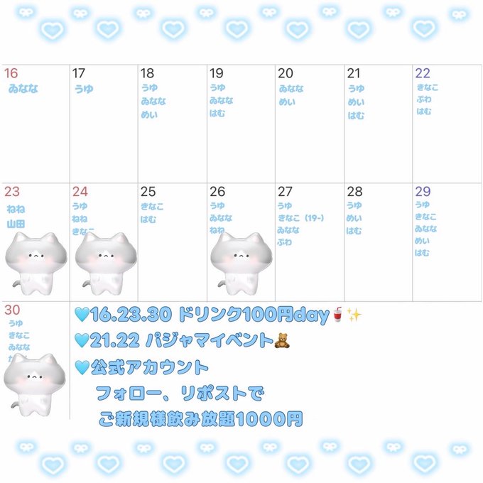 難波・日本橋 cafe&bar Stella固定あんず🌟@anz_u0616·後半のシフトです^^ 18日 19-23、21日 23-5、22日 23-5 23日23-5、 25日19-23、30日23-5 いてます❕348