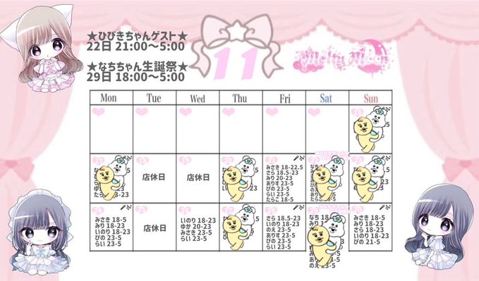 心斎橋・ 宗右衛門 Meltymoonなちだっち@1129空けててね🗝@yaki_shouronpou·🩵11月後半シフト🩵 16.17.20.22.23.27日 🕐18:00~22:30 29日 🕐18:00~05:00 🎀22日 ひびきさんゲスト出勤🎀 🤍29日 Nachi Birthday Event 🤍 ⬆️ほんまに全員きて!!!!😭⬆️ ※今月ナイト・追加出勤基本的にできません、よろしくお願いします🙇♀️ #コンカフェ #大阪ミナミ大阪コンカフェ🎀Melty moon🎀18337