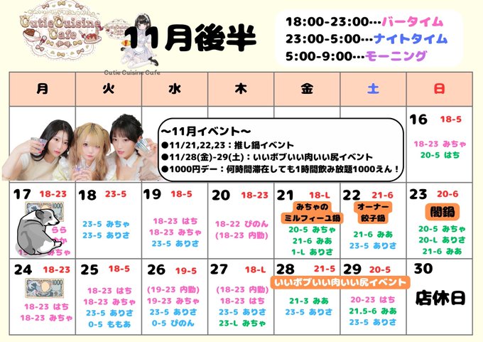 心斎橋・ 宗右衛門 Cutie Cuisine Cafeらら@コンカフェ🐹🍼@rarax_Osaka·11月後半出ましたよー 予定たくさん下さいお願い2263