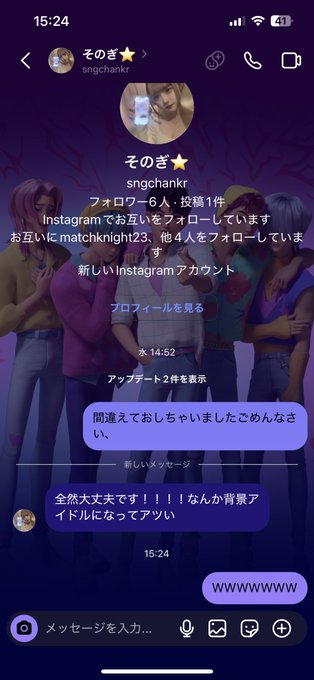 心斎橋・ 宗右衛門 牛を推す日が来るなんてアニ(偽物)@2ya0125·スマホ適当に持ってたら、そのぎちゃんのDM背景アイドルになってた1481