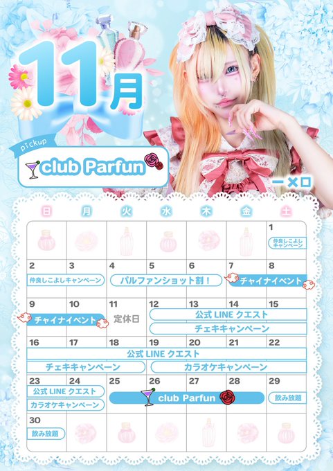 固定こゆ@パルファン大阪@PANIER_koyu·11月後半お給仕予定🗓⭐️ 25日はクラパラにゲストでお邪魔させていただきます🎶( ◜ω◝و(و🎶 来店予約などなどお待ちしております♩ 11月後半も素敵な出会いがありますようにー‼️15348