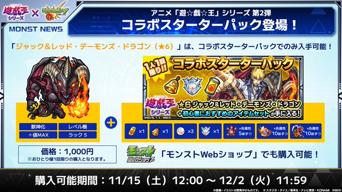 夜神いおり@PARFUN大阪@PANIER_iori·11月13日あかん、これはあかんですよ…(1000円課金確定)引用正方形のプロフィール画像モンスターストライク公式(モンスト)@monst_mixi·11月13日◤◤アニメ「遊☆戯☆王」シリーズ×モンスト 11/15 12時~コラボ第2弾開催◢◢ 情報❶ ✧コラボガチャに 【遊戯&闇遊戯】【十代】【遊星】 達が登場! ✦第1弾キャラ獣神化解禁! ✧スターターパックには【ジャック】も! https://monster-strike.com/news/20251113_1.html… #遊戯王 #yugioh #モンスト19539