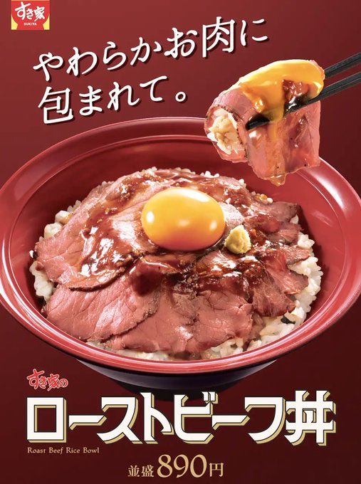 難波・日本橋 Lycoris(リコリス)あまねさんさんがリポスト極上のグルメ@gourmetroad5·11月11日よりすき家から、温かいごはんにスライスしたローストビーフを盛り付け、特製の醤油ダレをかけた「ローストビーフ丼」が新発売されます✨ ごはん大盛に並盛の3倍の量のお肉をのせた“メガ”サイズもあります!192,6321.1万92万