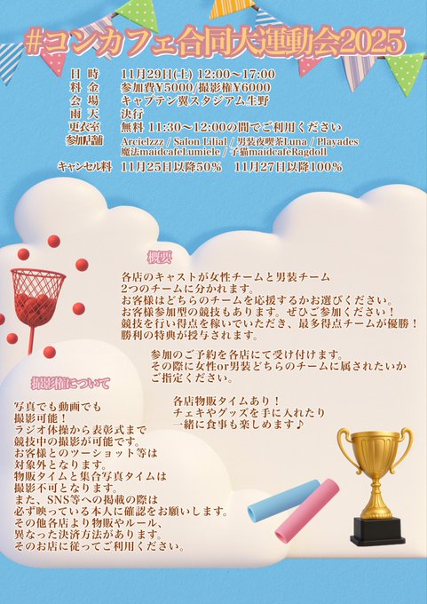 難波・日本橋 魔法maidcafe Lumiele𝐋𝐮𝐦𝐢𝐞𝐥𝐞🪄︎︎魔法メイドカフェルミエルさんがリポスト𝐑𝐚𝐠𝐝𝐨𝐥𝐥🐾子猫メイドカフェラグドール@Ragdoll_maid·🌸#コンカフェ合同大運動会2025🌸 11月29日(土) 12:00〜17:00 キャプテン翼スタジアム生野にて開催🎽 ルミエル&ラグドールからは まろん・めじろ・ひめか・ここ・るな・しの が出場いたします🐾 ご主人様・お嬢様の応援が力になります💕 ご予約は公式ラグドールまで📩まろん🧁𝐋𝐮𝐦𝐢𝐞𝐥𝐞&𝐑𝐚𝐠𝐝𝐨𝐥𝐥さんと他5人12245,965