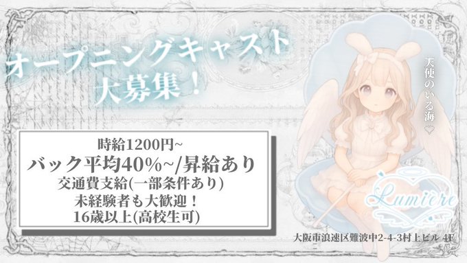 難波・日本橋 Lumiereみゅあ@___3yua·3時間まだまだ天使ちゃん募集中⬇️♡ #コンカフェ #コンカフェ求人 #コンカフェ嬢 #日本橋 #オタロード #Lumiere引用Lumière【大阪日本橋コンカフェ】@lumiereangel_·3時間🤍オープニングキャスト大募集🤍 ⟡大阪日本橋コンカフェ「Lumière」✧︎ 🤍氏名 🤍生年月日(年齢) 🤍コンカフェ経験の有無 🤍加工の少ない写真 ご応募の場合上記内容をDMにてご送信ください📨♡ #コンカフェ #コンカフェ求人 #コンカフェ嬢 #日本橋 #オタロード1109