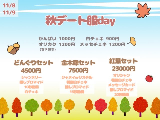 難波・日本橋 くりーむ♡める♡@cream_melu·12時間きょう18じからいる!!引用くりーむ♡@pome_098·11月7日🍂11/8(金)・11/9(土)開催🍂 【秋デート服day】 秋デートをテーマにしたお洋服でお出迎えします🍁🤍 秋らしい雰囲気の中で、ゆったりとした時間をお楽しみください🎶5189