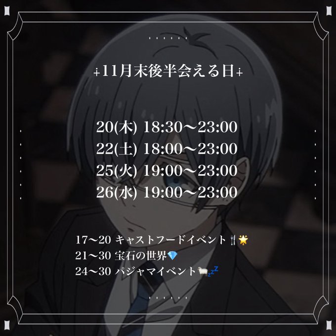難波・日本橋 cafe &barアンジェール固定じとめ@angelle@jtm_10·11月前半シフト♩♩- ̫- 15日階段だけど気をつけてくるよね🚗³₃ 前半日常が充実しすぎてすぎて2日しかないごめんに😅꜆꜄꜆27130