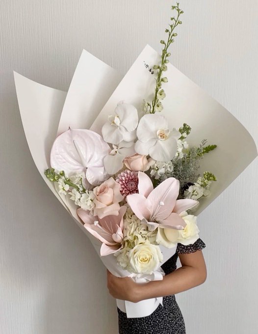 心斎橋・ 宗右衛門 黒猫メイド魔法カフェ大阪店まひるさん⋆☽︎·̩͙さんがリポストいちごみるくちゃん🍼🎀@koi_mazi·花束作る時にこれ参考にしたい𓂃 💐🤍 サプライズでこんなのもらったらめちゃくちゃ嬉しくてたまらんのですが....🥺🎀55931.2万72万