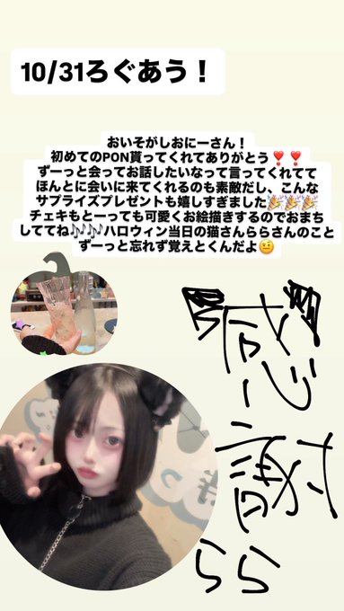 難波・日本橋 じゃぱにーずKAWAiiるん@ru_n_jap·8時間10.31ろぐあう( ᴖ ̫ᴖ ) 久しぶりかえちゃんご主、3日目も待ってるねねむるんご主、2日連続ご主、🥃かえちゃんご主、ベロ酔いご主、いつも照明ありがとうご主、遠隔ありがとうるんご主、仮装最高ご主、お久しぶりなメイトさん💜 乾杯チェキ沢山ありがとう💞💞 今日初ナイト23-5‼️絶対来て‼️引用るん@ru_n_jap·10月31日君を夢中にさせる魔法じゃん? #自撮り界隈 #オタロード #美男美女さんと繋がりたい #日本橋コンカフェ #コンカフェ大阪 #コンカフェキャスト #コンカフェ嬢 #コンカフェ1264