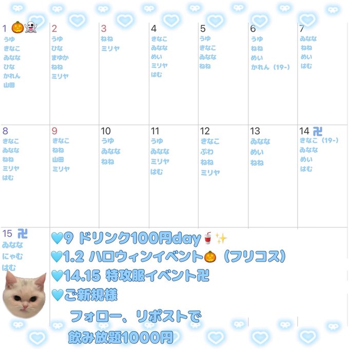 難波・日本橋 cafe&bar Stella固定すみれ⭐️@sume_00·11月前半のしふと 1-3日フリコスイベ 8日ささみさん飲酒解禁会🥂🍾 7.9日アニマルイベ29