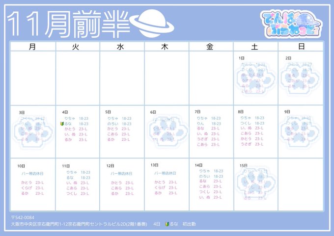 難波・日本橋 mono CLUB固定ななみ🌠 @mono CLUB@nanami_monoclub·お給仕表です!!ー🌠🌠🌠 今月も少ないけど会いに来てね😞😞😞❗️❗️❗️19239
