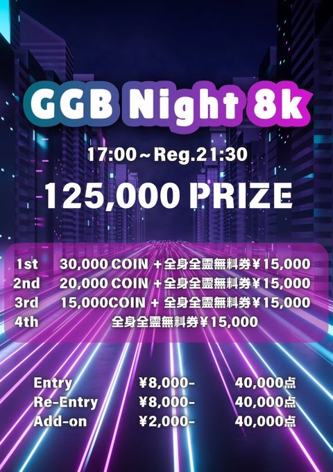 心斎橋・ 宗右衛門 GoodGame&BluffGoodGame&Bluff_GGB@GGB_osaka·こんにちは😃 本日も17時からオープンしてます✨ 今日もGGBでポーカーしよう😁 💠本日のトーナメント💠 🔥GGB Night 8k🔥 💰125,000 PRIZE!! 🕔 17:00 Start / 📝 Reg21:30 🏆PRIZE🏆 🥇 30,000 COIN + 全身全霊無料券 ¥15,000 🥈 20,000 COIN + 全身全霊無料券 ¥15,000 🥉 15,000 COIN +さらに表示1,091