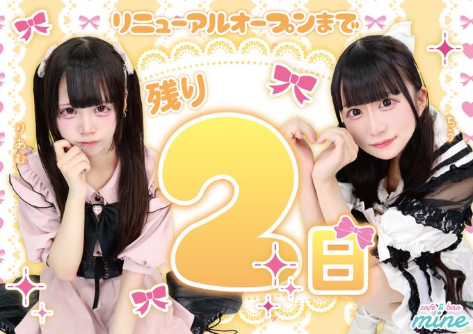難波・日本橋 まいんりあむ@mine休業中はPARFUN❤︎さんがリポストまいん🎀いもうとコンカフェ@mine1201_·10月27日のリニューアルオープンまで... ✨【残り2日】✨11311,148